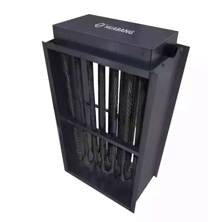 風(fēng)道加熱器主要用于風(fēng)道中的空氣加熱,規(guī)格分低溫、中溫、高溫三種形式,在結(jié)構(gòu)上的共同之處是采用了用鋼板支撐電熱管以減少風(fēng)機(jī)停止時(shí)電熱管的振動,在接線盒中都裝有超溫控制裝置。